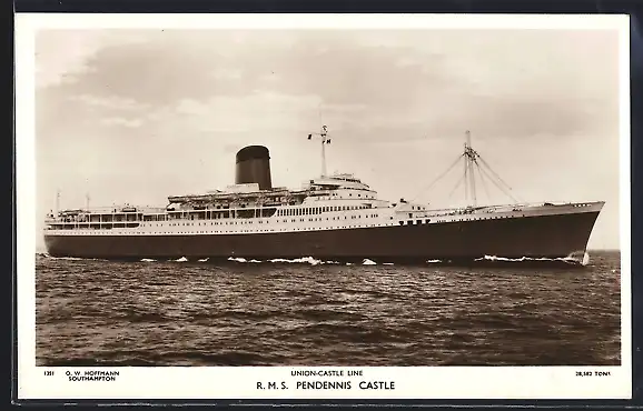 AK Passagierschiff RMS Pendennis Castle auf hoher See, Union-Castle Line