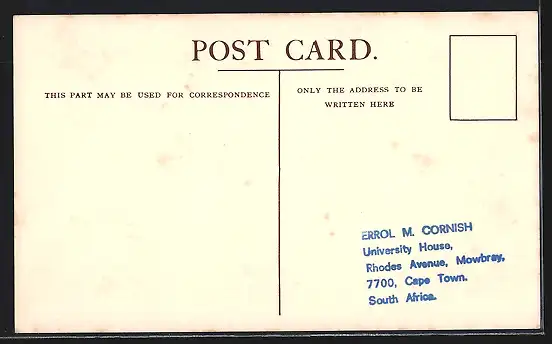 Personenbezogene Daten auf der Rückseite der Karte wurden durch blauen Textmarker unkenntlich gemacht. Die blauen Stellen sind auf die Vorderseite durchgeweicht und wirken sich negativ auf das Postkartenfoto aus