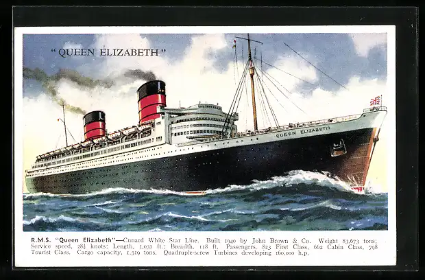 AK Passagierschiff R.M.S. Queen Elizabeth, Cunard White Star Line