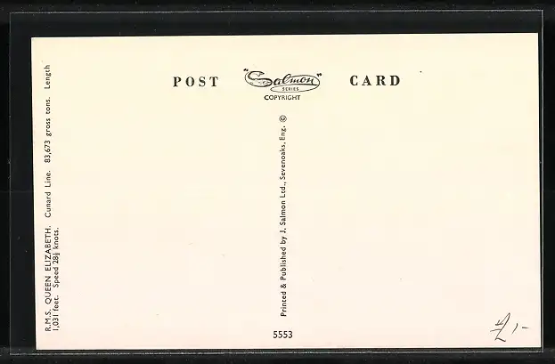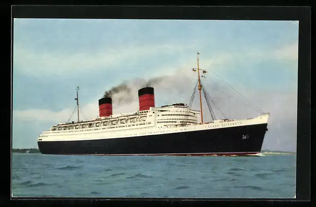AK Passagierschiff R.M.S. Queen Elizabeth, Gesamtansicht auf See