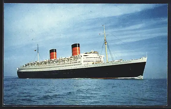 AK Passagierschiff RMS Queen Elizabeth auf See, Cunard Line