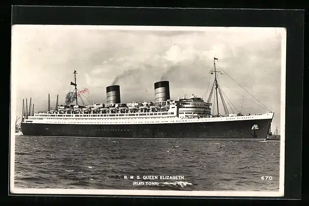 AK Passagierschiff RMS Queen Elizabeth im Hafen