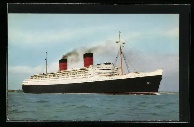 AK Passagierschiff RMS Queen Elizabeth nahe der Küste, Cunard Line