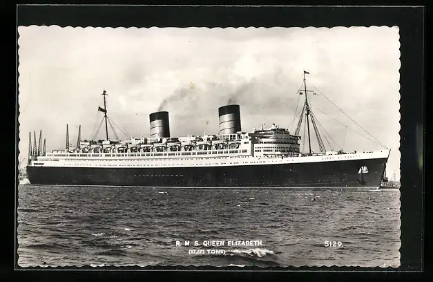 AK Passagierschiff RMS Queen Elizabeth verlässt den Hafen