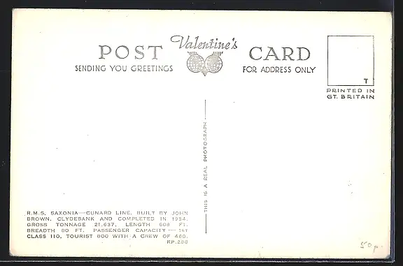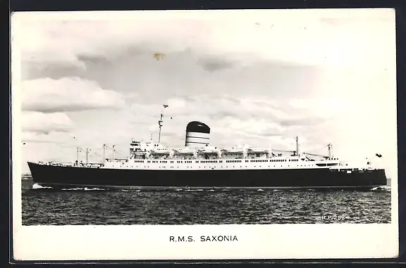 AK Passagierschiff R.M.S. Saxonia in Fahrt, Cunard Liner