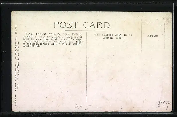 AK Passagierschiff R.M.S. Titanic der White Star Line in voller Fahrt auf hoher See
