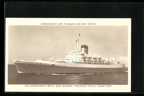 AK Passagierschiff RMS Transvaal Castle auf hoher See, Union-Castle Line