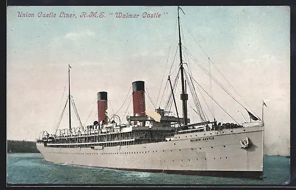 AK Passagierschiff RMS Walmer Castle vor der Küste, Union-Castle Line