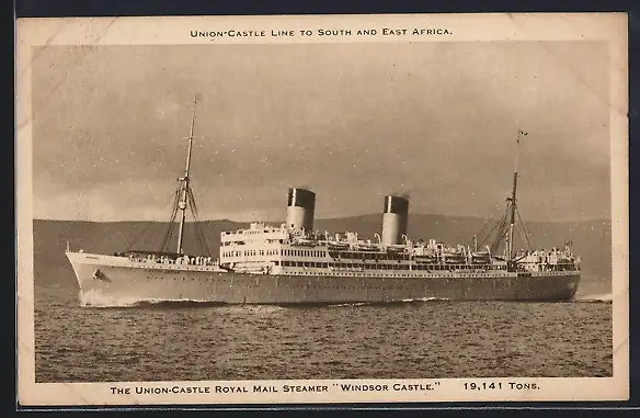 AK Passagierschiff RMS Windsor Castle vor der Küste, The Union-Castle Line
