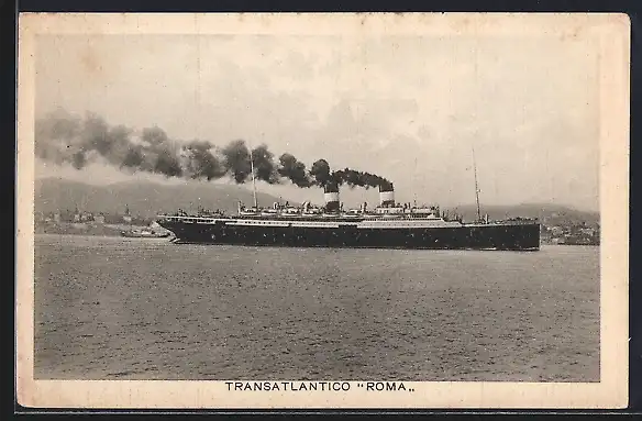 AK Passagierschiff Roma fährt unter Volldampf entlang der Küste, Transatlantico