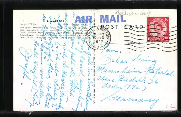 AK Passagierschiff S.S. America in Fahrt
