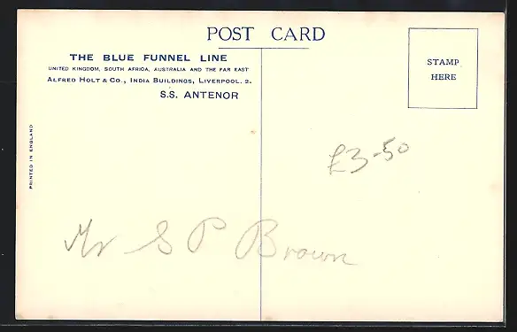 AK Passagierschiff S.S. Antenor auf hoher See, The Blue Funnel Line