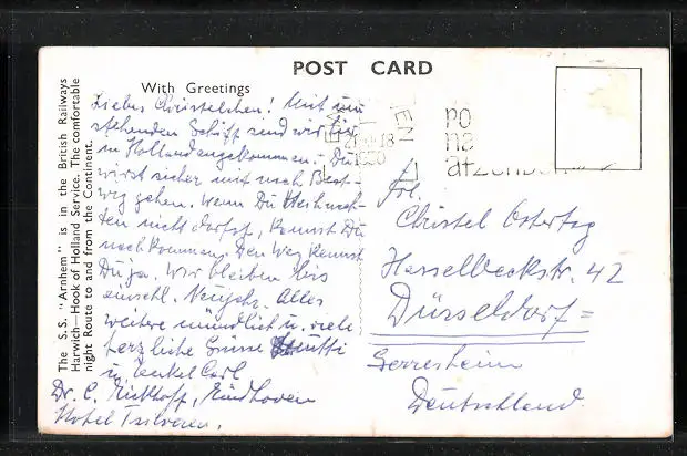 AK Passagierschiff SS Arnhem der British Railways aus der Vogelschau