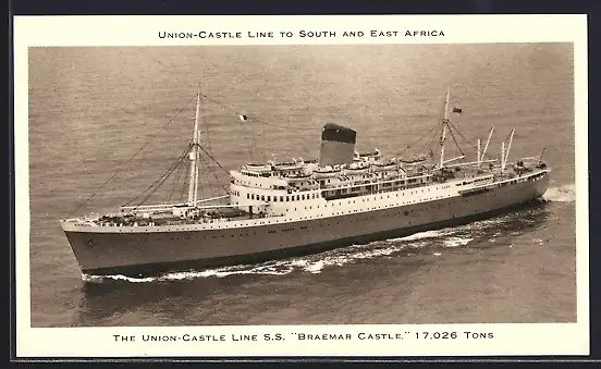 AK Passagierschiff S.S. Braemar Castle der Union-Castle Line auf See
