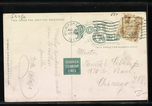 gelaufen 1911, Briefmarke entfernt, guter Zustand