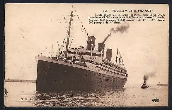 AK Passagierschiff S.S. Ile de France in Küstennähe