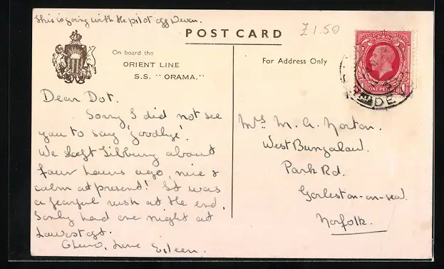 AK Passagierschiff S.S. Orama, Aussenansicht des Schiffes der Orient Line