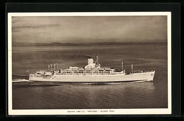 AK Passagierschiff S.S. Orcades in Fahrt aus der Vogelschau, Orient Line