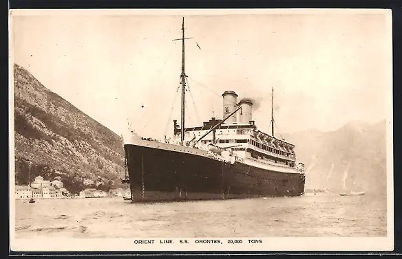 AK Passagierschiff SS Orontes der Orient Line vor einer steilen Küste