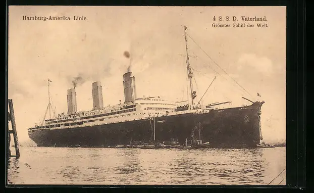 AK Passagierschiff S.S.D. Vaterland neben Schleppern unter Dampf, Hamburg-Amerika Linie