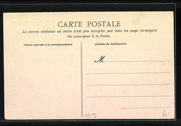 Personenbezogene Daten auf der Rückseite der Karte wurden durch blauen Textmarker unkenntlich gemacht. Die blauen Stellen sind auf die Vorderseite durchgeweicht und wirken sich negativ auf das Postkartenfoto aus