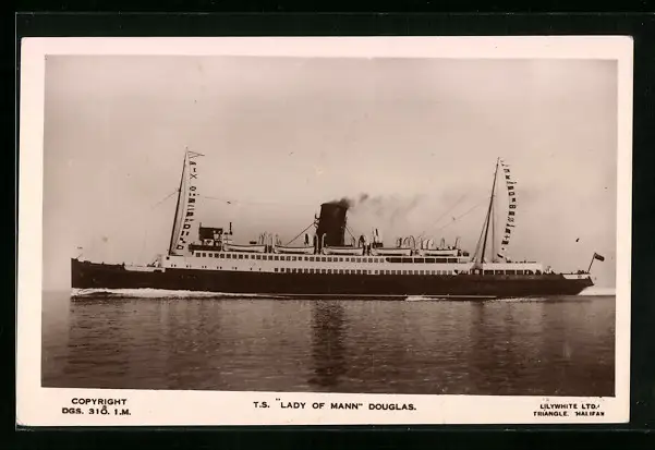 AK Passagierschiff TS Lady of Mann in Flaggengala