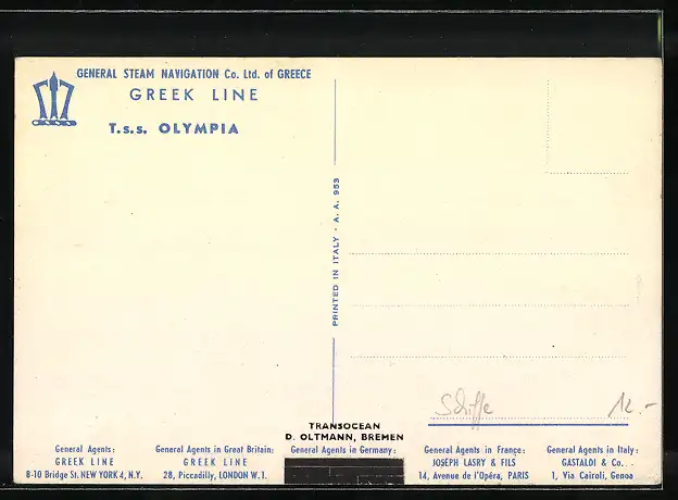 AK Passagierschiff T.S.S. Olympia, Greek Line