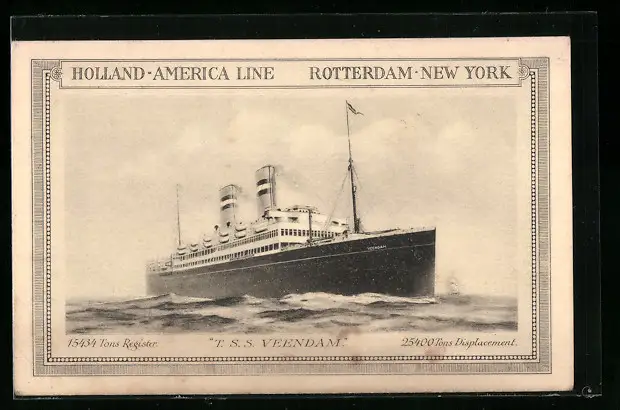 AK Passagierschiff TSS Veendam, Linie Rotterdam - New York