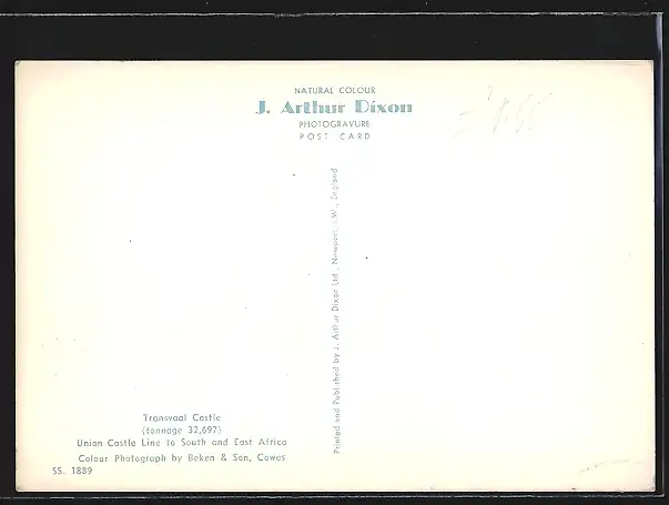 AK Passagierschiff Transvaal Castle auf offener See, Union-Castle Line