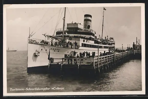 AK Passagierschiff Turbinen-Schnelldampfer Cobra am Hafen