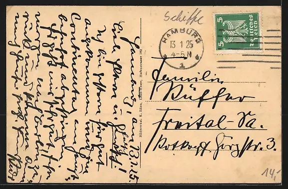gelaufen 1925, Eckknick re. oben, Bugspur li., guter Zustand