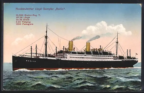 AK Passagierschiff, norddeutscher Lloyd-Dampfer Berlin in Fahrt