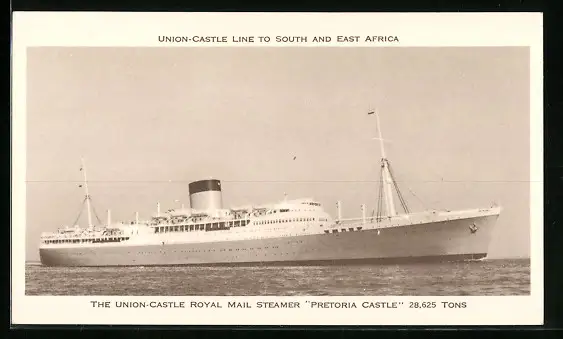AK Passagierschiff und Postdampfer Pretoria Castle der Union-Castle Line auf hoher See
