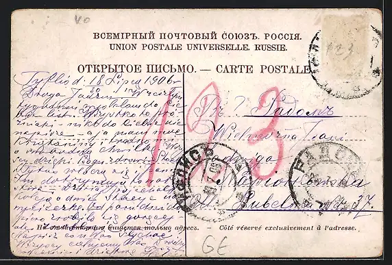 gelaufen 1906, Briefmarke entfernt, guter Zustand