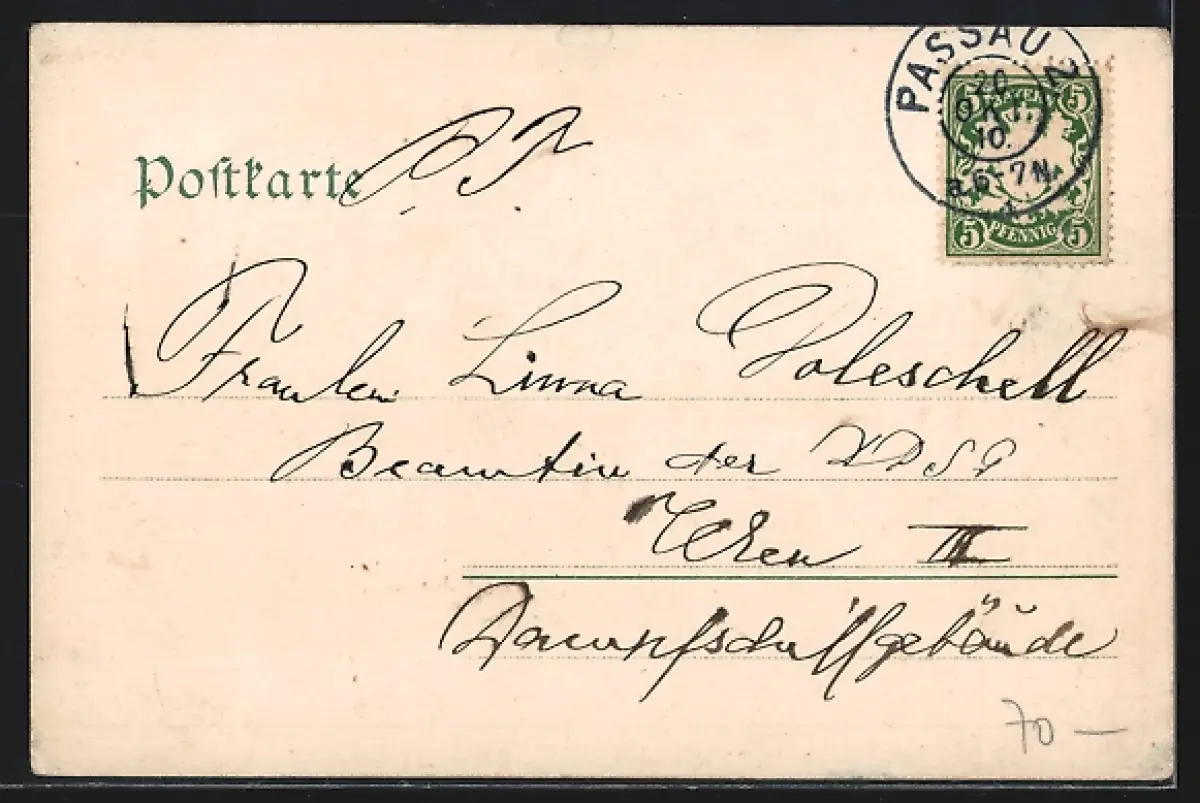 alte Ansichtskarte, gelaufen 1910, Eckknick unten li., Einrisse mittig oben, Stempelspur