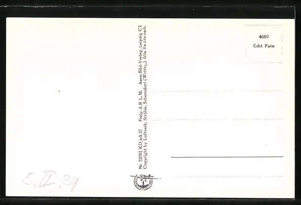 Personenbezogene Daten auf der Rückseite der Karte wurden durch blauen Textmarker unkenntlich gemacht. Die blauen Stellen sind auf die Vorderseite durchgeweicht und wirken sich negativ auf das Postkartenfoto aus