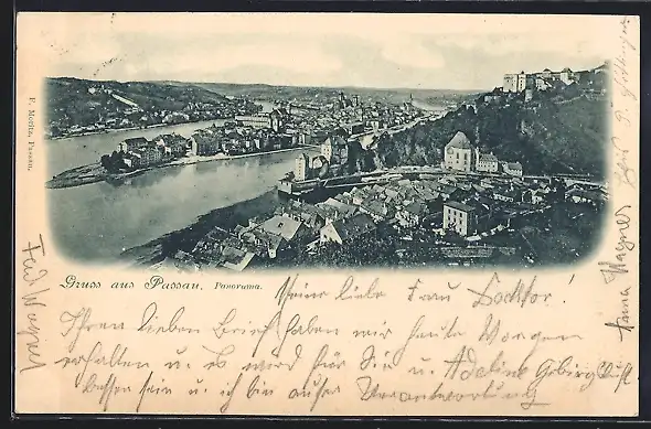 AK Passau, Panorama mit Festung