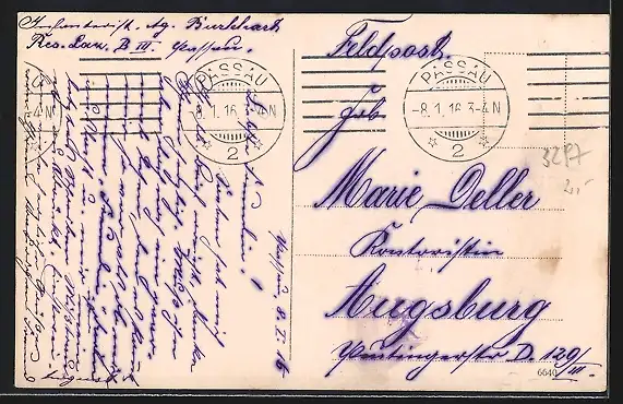 gelaufen 1916, Eckknick li. oben, guter Zustand