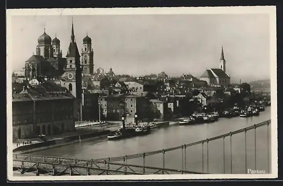 AK Passau, Teilansicht mit Dampfern