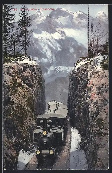 AK Passhöhe mit Brünigbahn und Bergen