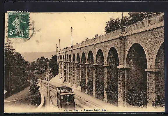 AK Pau, Avenue Lèon Say, Strassenbahn