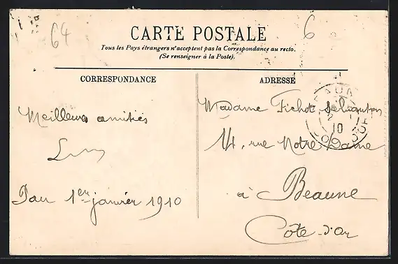 Personenbezogene Daten auf der Rückseite der Karte wurden durch blauen Textmarker unkenntlich gemacht. Die blauen Stellen sind auf die Vorderseite durchgeweicht und wirken sich negativ auf das Postkartenfoto aus