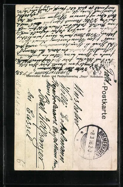alte Ansichtskarte, gelaufen 1916 als Feldpost, Eckknick rechts unten, guter Zustand