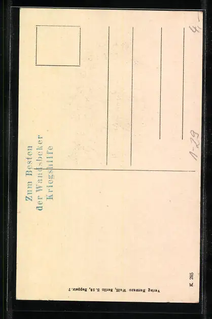 Personenbezogene Daten auf der Rückseite der Karte wurden durch blauen Textmarker unkenntlich gemacht. Die blauen Stellen sind auf die Vorderseite durchgeweicht und wirken sich negativ auf das Postkartenfoto aus