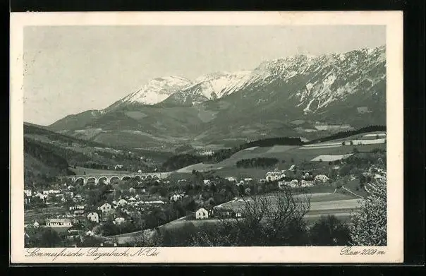 AK Payerbach, Gesamtansicht mit Viadukt und Rax