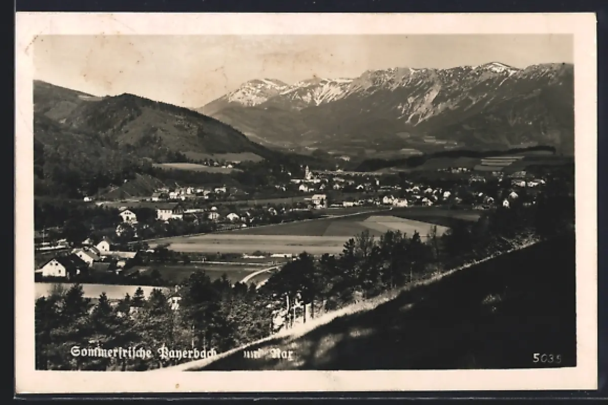 AK Payerbach, Ortsansicht mit Bergpanorama
