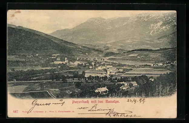 AK Payerbach, Ortsansicht mit der Raxalpe