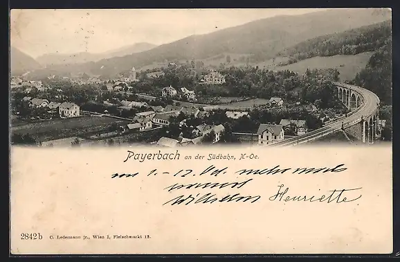 AK Payerbach /Südbahn, Ortsansicht mit Viadukt aus der Vogelschau