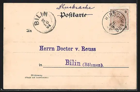 Personenbezogene Daten auf der Rückseite der Karte wurden durch blauen Textmarker unkenntlich gemacht. Die blauen Stellen sind auf die Vorderseite durchgeweicht und wirken sich negativ auf das Postkartenfoto aus