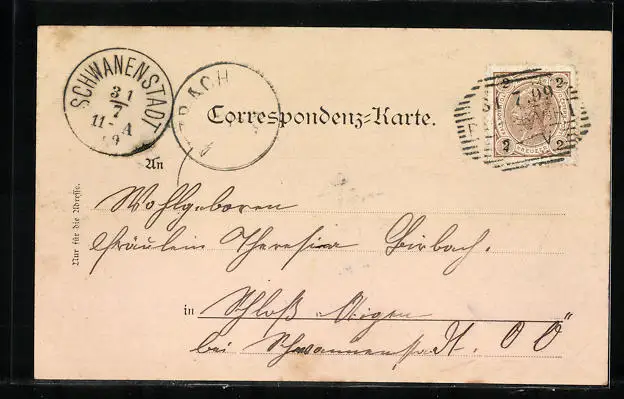 alte Ansichtskarte, gelaufen 1899, Stempelspur, guter Zustand